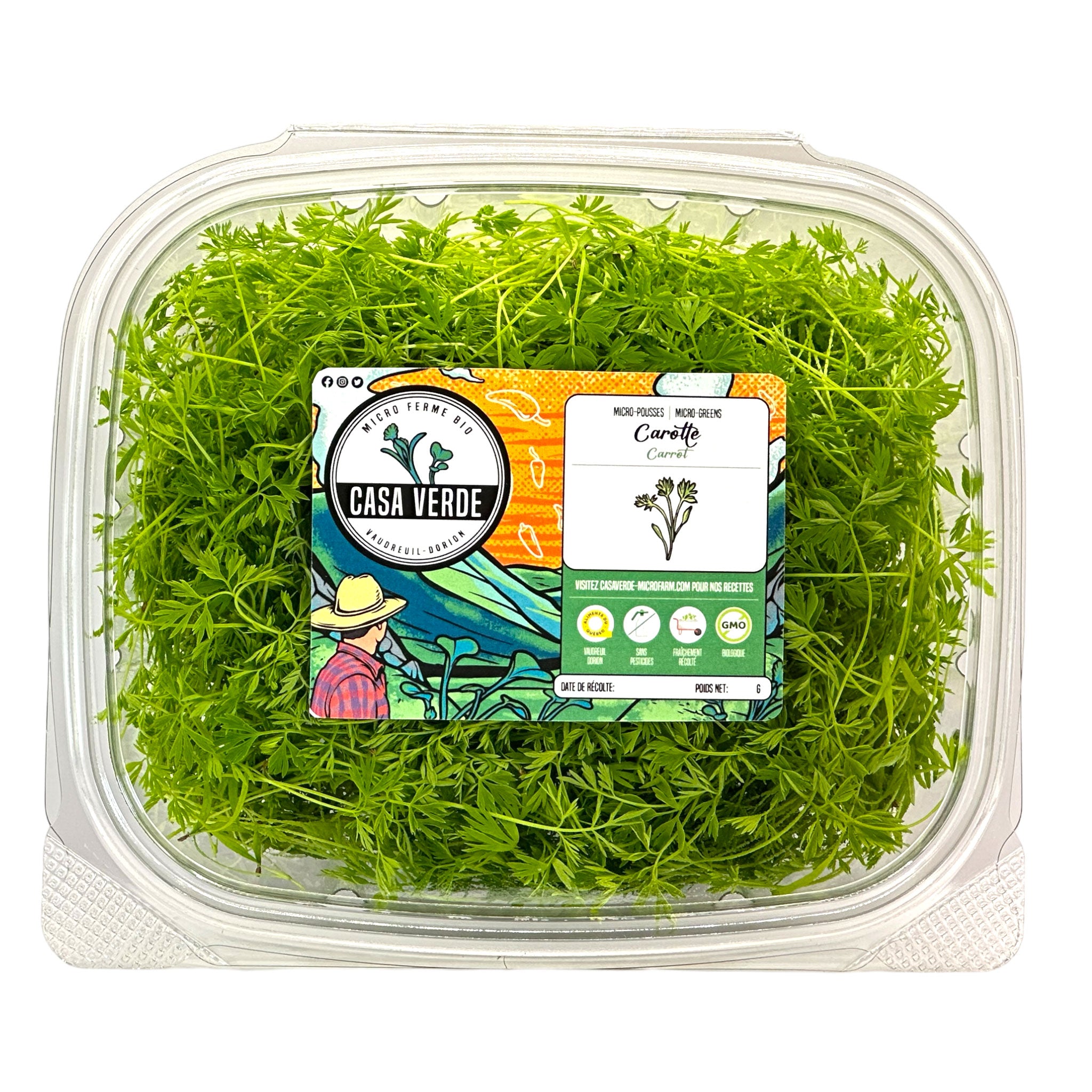 Élégantes, aromatiques et naturellement sucrées, les micro-pousses de carottes de Casa Verde apportent une fraîcheur herbacée raffinée et une beauté aérienne à tous les plats.