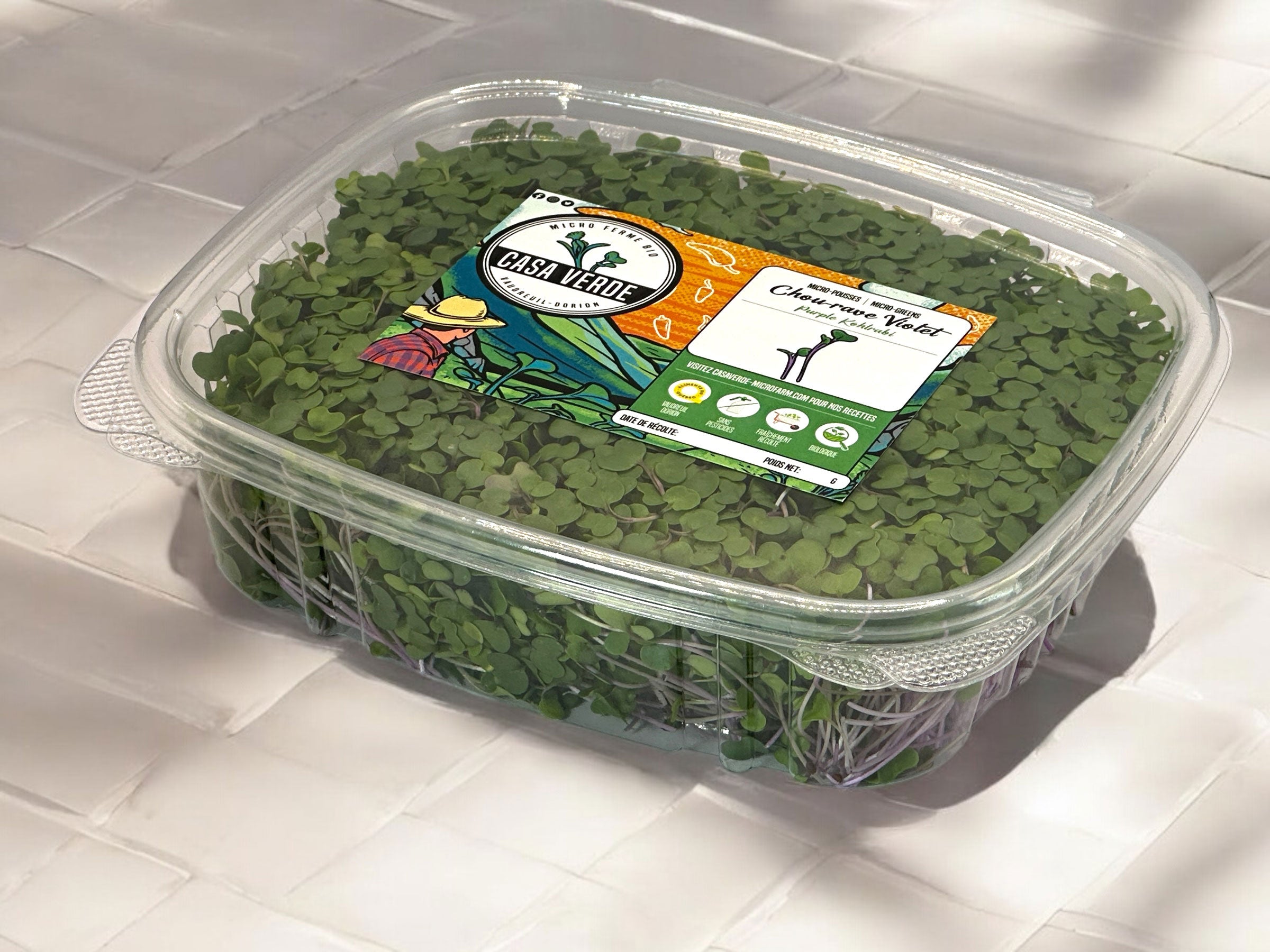 Couleur des micro-pousses : Tiges violet clair, avec un feuillage aux teintes vertes et violettes
