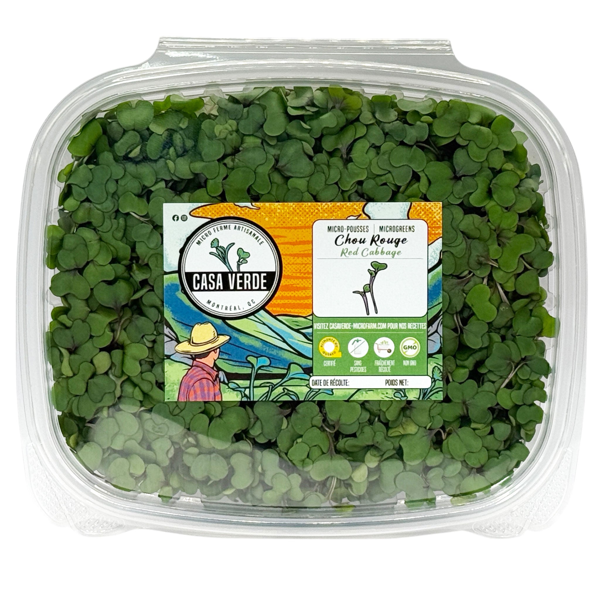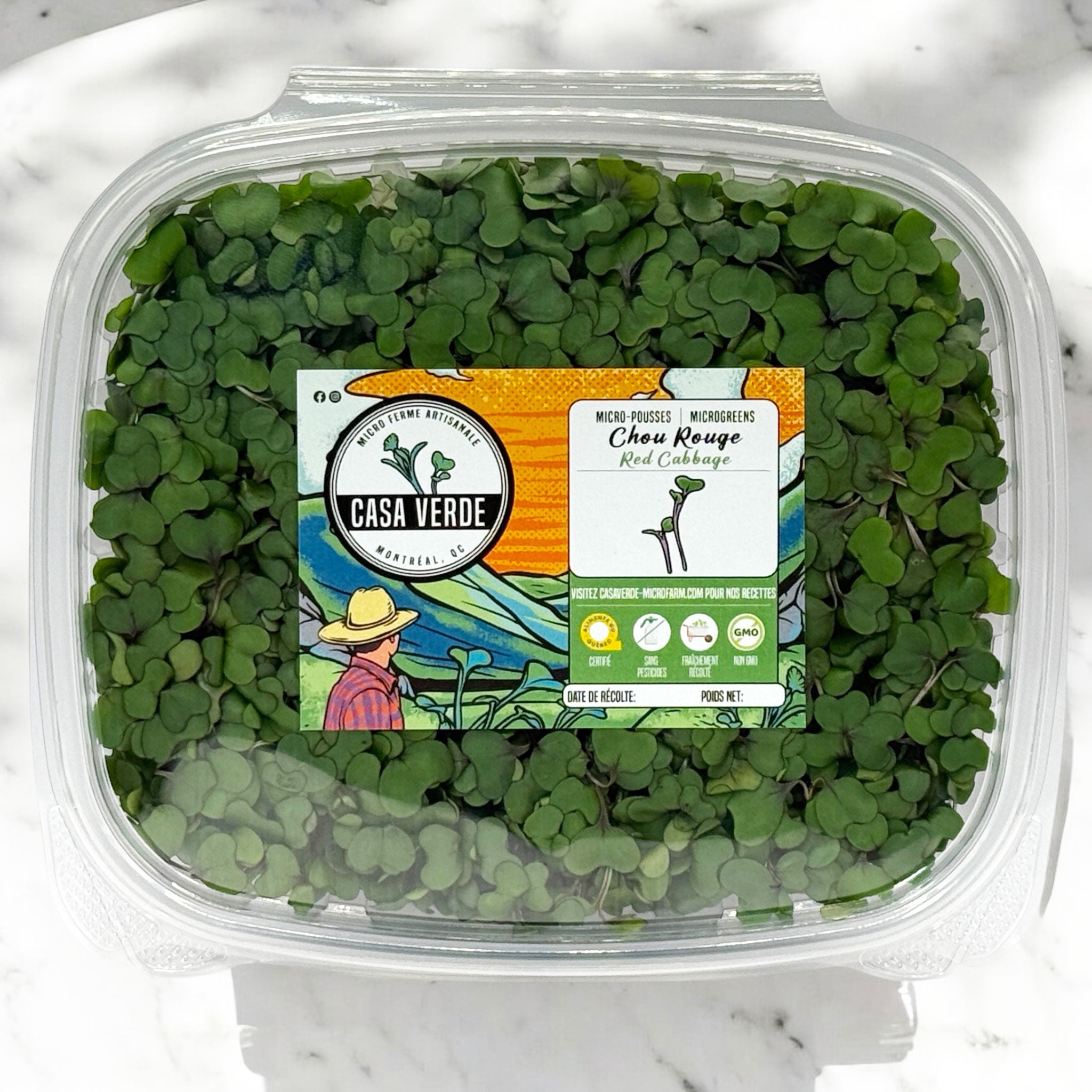 Lumineuses, croquantes et d'un magnifique violet, les micro-pousses de chou rouge de Casa Verde ajoutent de la couleur, du croquant et une douce saveur de brassicacée à tous les plats.