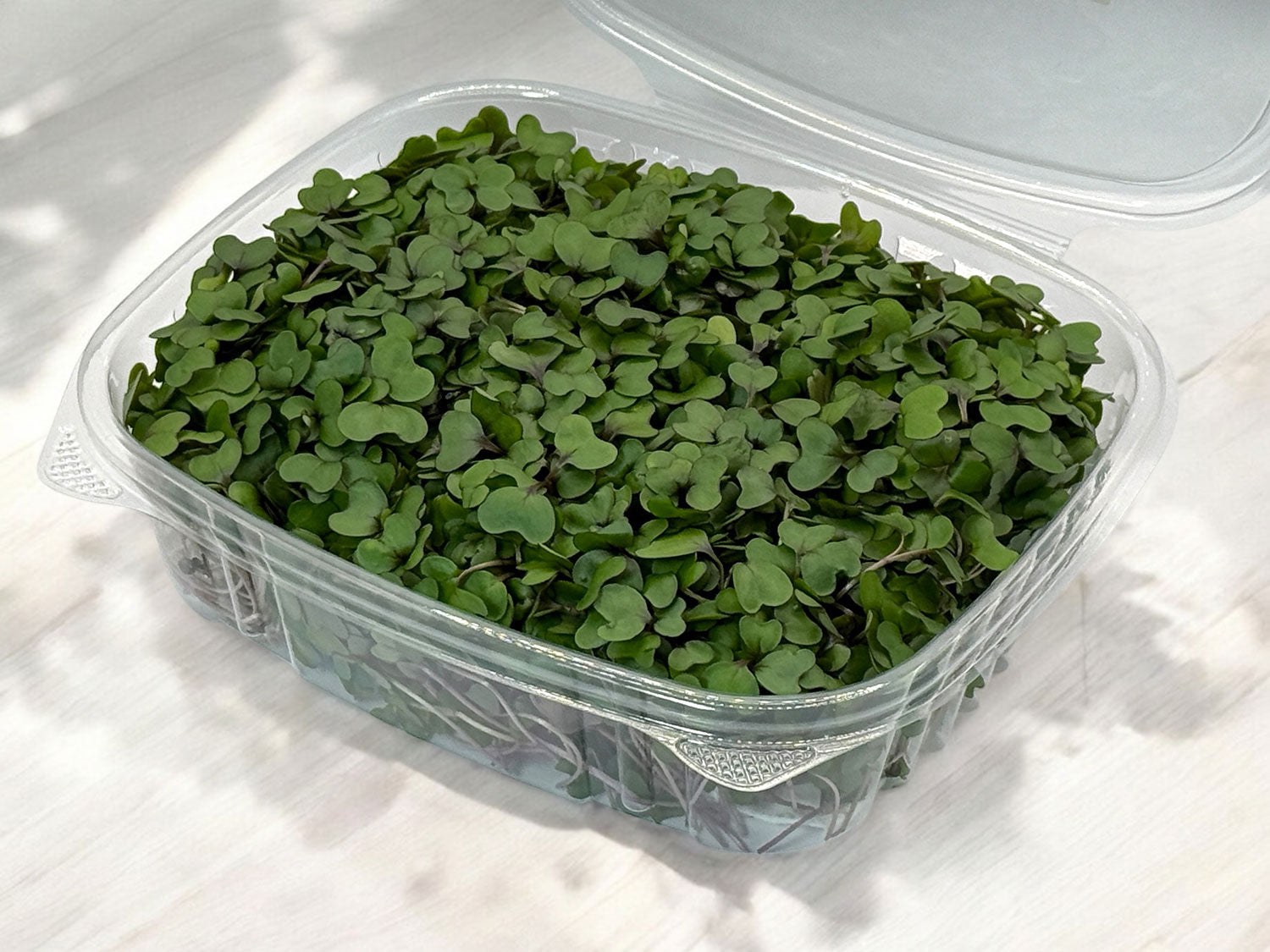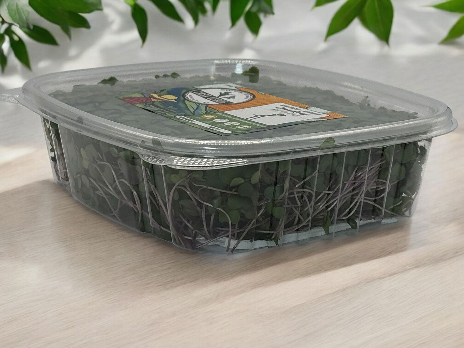 Une micro-pousse audacieuse et riche en nutriments, aux tiges violettes éclatantes, à la texture croquante et à la saveur fraîche et légèrement sucrée de brassicacée, parfaite pour les salades, les bols, les sandwichs et les présentations modernes et colorées.