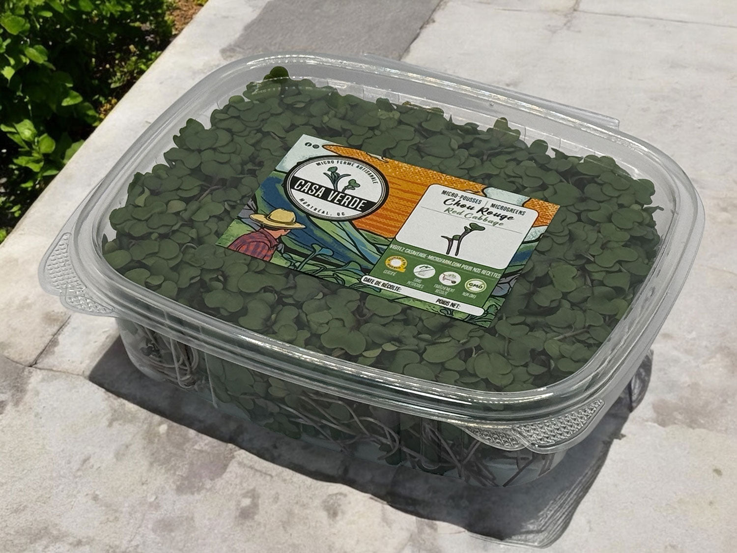 Le chou Red Acre est une variété ancienne de brassicacée classique, reconnue pour sa pigmentation vive et sa saveur douce et sucrée. Chez Casa Verde Microfarm , nous cultivons des micro-pousses de chou rouge sous un éclairage à spectre optimisé afin d'intensifier la coloration violette, d'améliorer l'uniformité et de produire des légumes verts toujours croquants et prêts à être utilisés par les chefs.