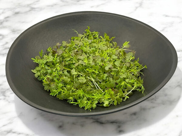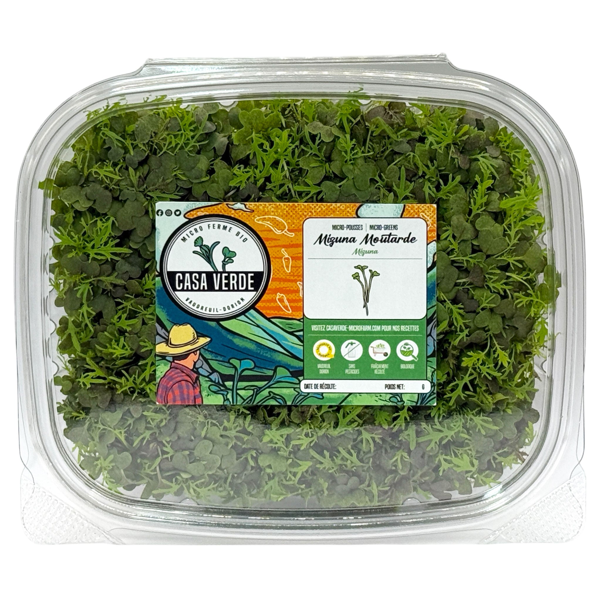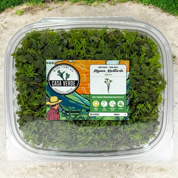 La mizuna est un légume-feuille japonais traditionnel apprécié pour sa texture tendre et sa saveur douce et légèrement poivrée. À la microferme Casa Verde , les micro-pousses de mizuna rouge sont cultivées sous un éclairage contrôlé afin d'intensifier leur pigmentation violette tout en préservant la fermeté des tiges et la douceur des feuilles.