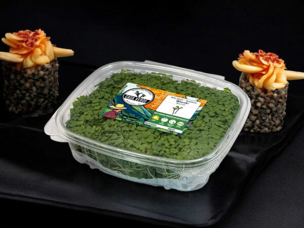 Les micro-pousses de moutarde wasabi se distinguent par leurs feuilles d'un vert éclatant et leurs tiges croquantes : un style simple, épuré et très expressif dans l'assiette. Leur aspect minimaliste les rend idéales pour les bars à sushis, les menus dégustation et les plats asiatiques raffinés.