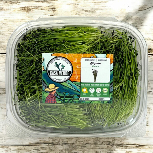 Chez Casa Verde Microfarm , nous cultivons des micro-pousses d'oignons pour obtenir des tiges croquantes, une hauteur uniforme et une saveur d'alliacées équilibrée qui rehausse les plats sans les dominer.